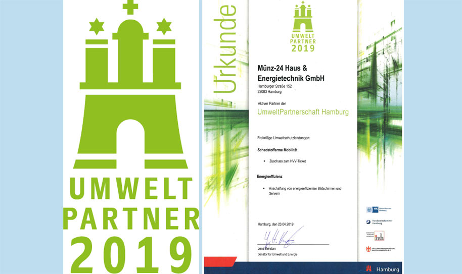 Die Münz-24 Haus- & Energietechnik ist seit elf Jahren aktiver UmweltPartner der Stadt Hamburg.