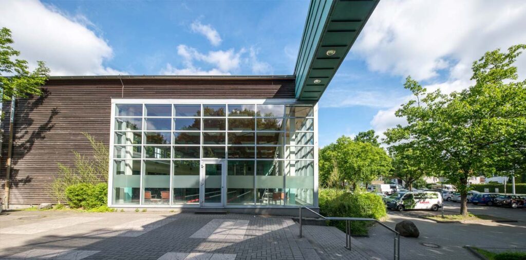 Der Aufgang zum Schwimmbad Bondenwald Hamburg.