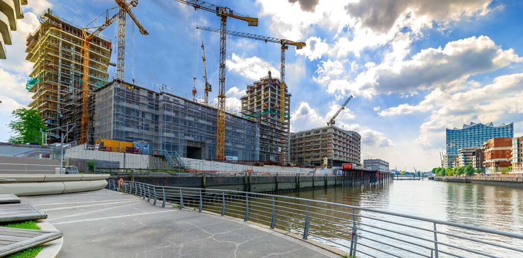 • Sanitärtechnik im gehobenem Wohnungsbau Baufeld 55 auf der Landzunge mit Blick zur Elbphilharmonie